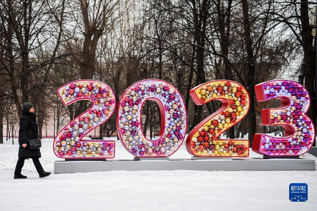 12月27日,市民經(jīng)過俄羅斯首都莫斯科的一處新年裝飾。