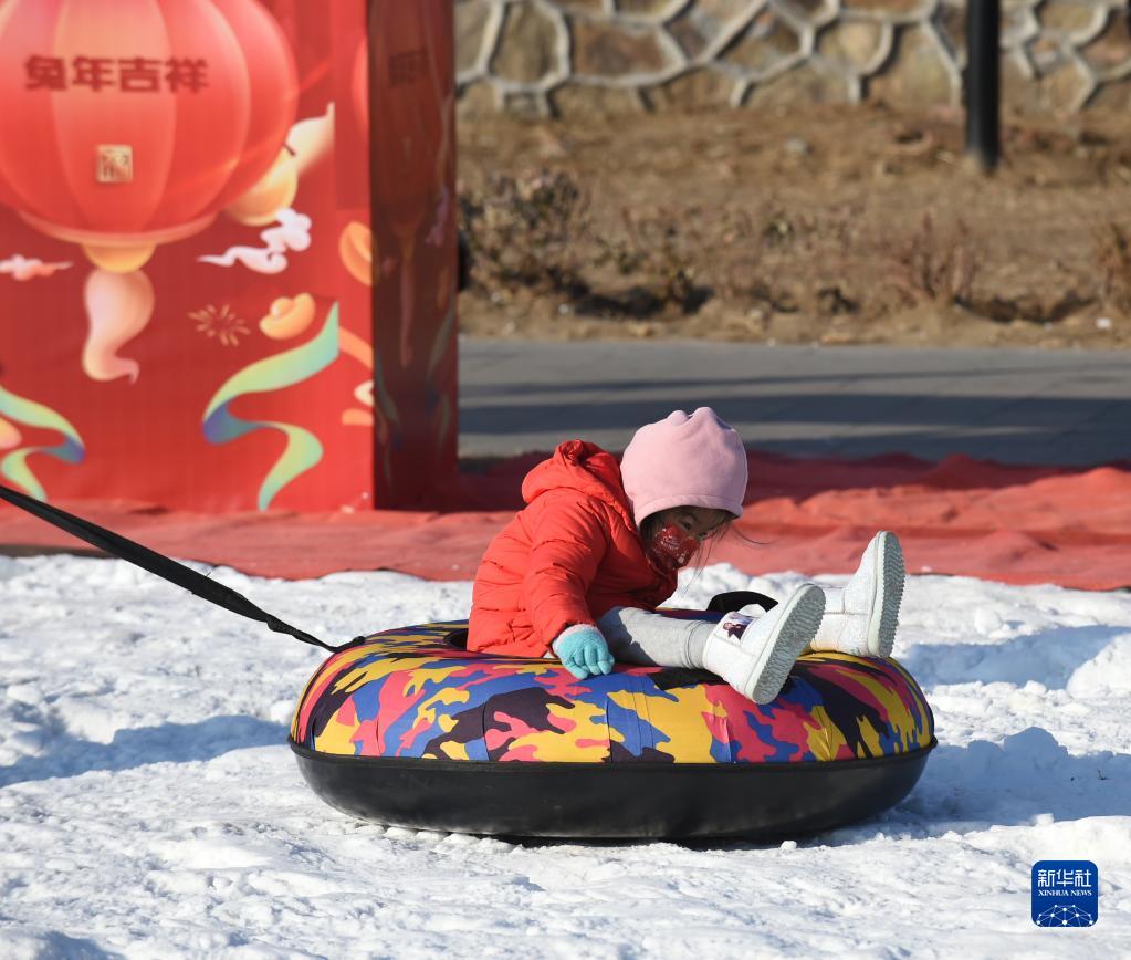 12月31日,一名小朋友在圓明園雪場玩耍。