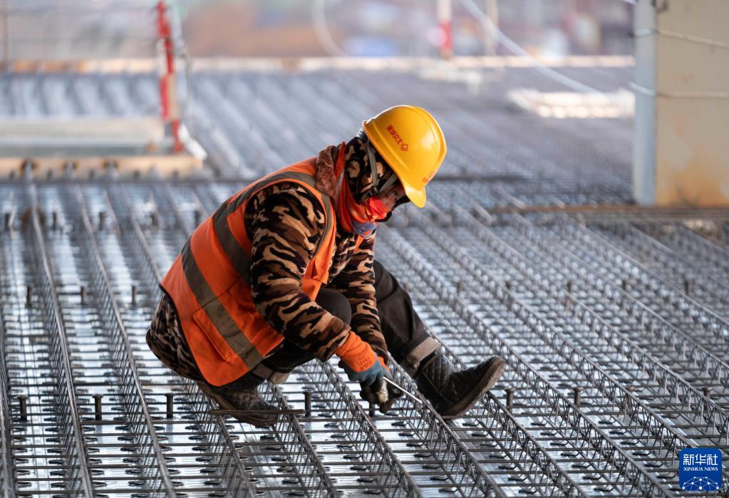 12月31日,在北京市豐臺區(qū)檔案館建設(shè)項目工地,鋼筋工孫會琴在做鋼筋綁扎。