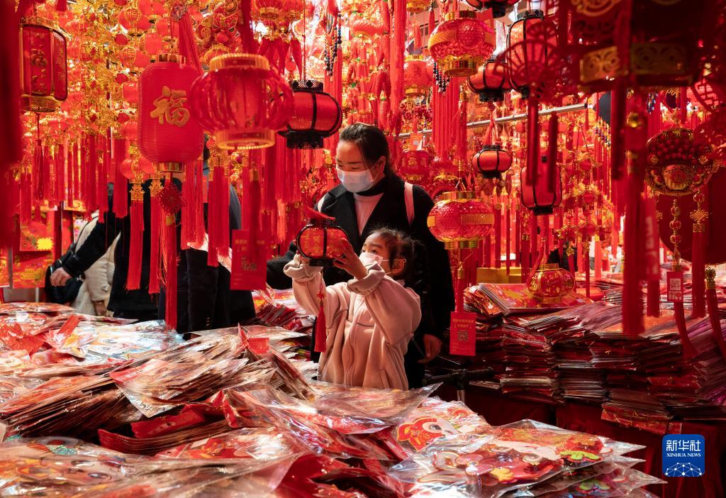 近期,位于云南省昆明市的新螺螄灣國際商貿城內節日飾品購銷兩旺,紅燈籠、春聯、兔年生肖飾品等銷售逐漸升溫。