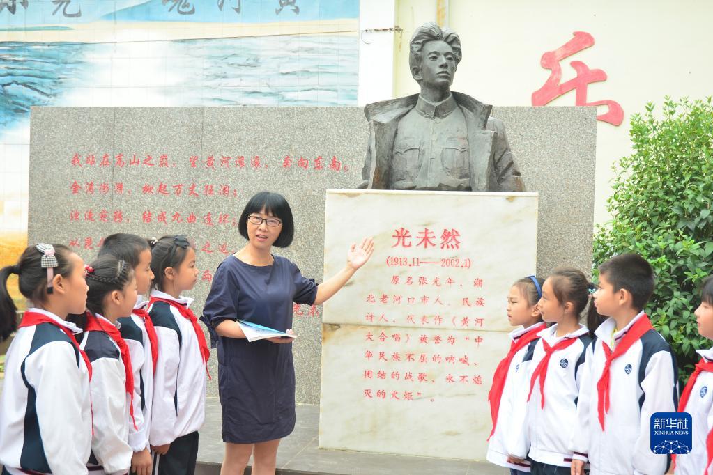 湖北省老河口市光未然小學(xué)創(chuàng)辦于1921年,2008年5月,由原老河口市第三小學(xué)更名為光未然小學(xué)。該小學(xué)依托得天獨(dú)厚的文化底色,把光未然的家國(guó)情懷、文學(xué)影響力和《黃河大合唱》所體現(xiàn)的民族精神與立德樹人有機(jī)結(jié)合,打造“一館三區(qū)”紅色文化校園,使“承詩人大志,育愛國(guó)情懷”的辦學(xué)理念落小落實(shí)。新華社發(fā)