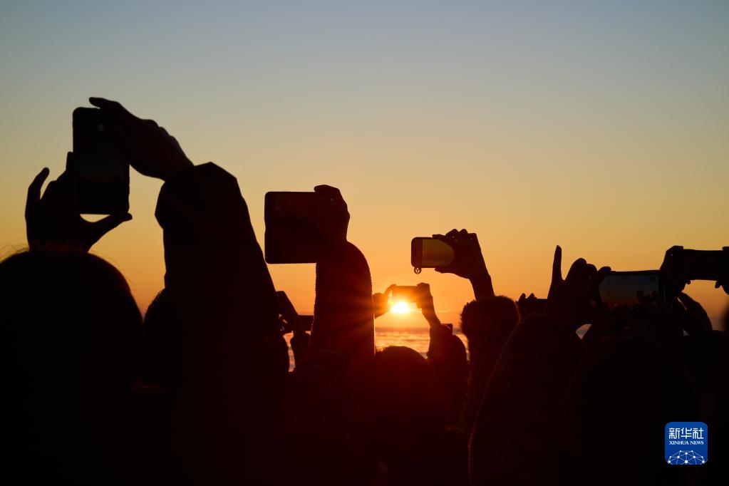 新年伊始,人們在海邊迎接新年第一縷陽光。