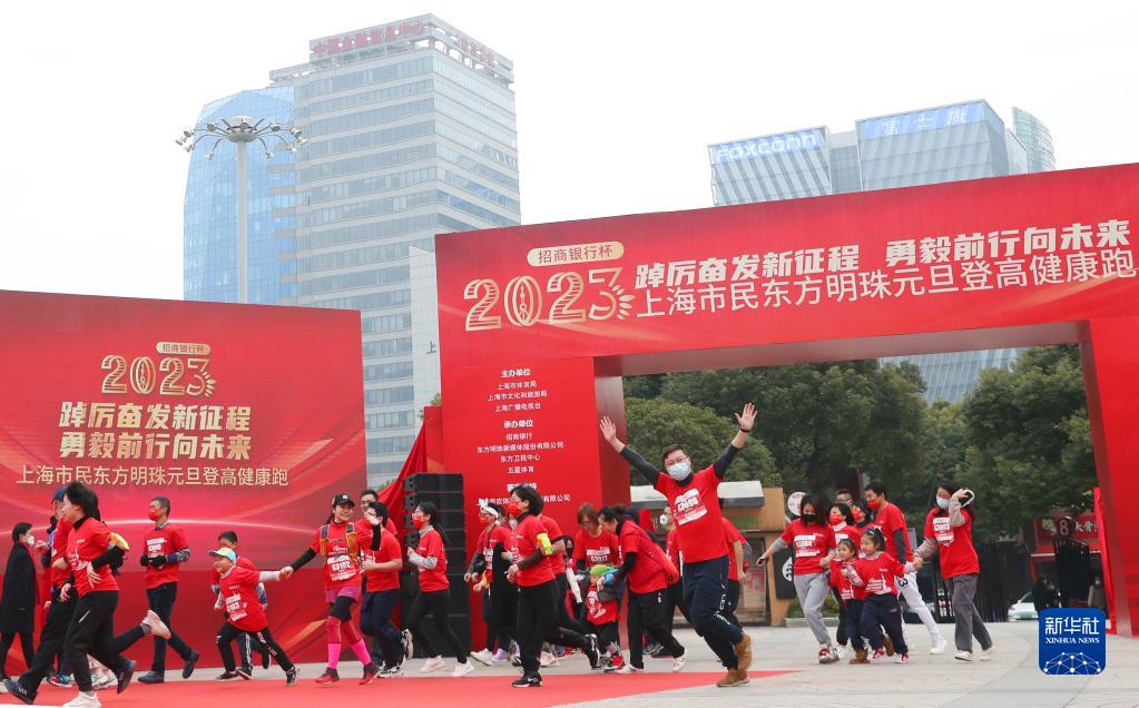 1月1日,在上海市,參加?xùn)|方明珠元旦登高健康跑的選手從起跑點(diǎn)出發(fā)。