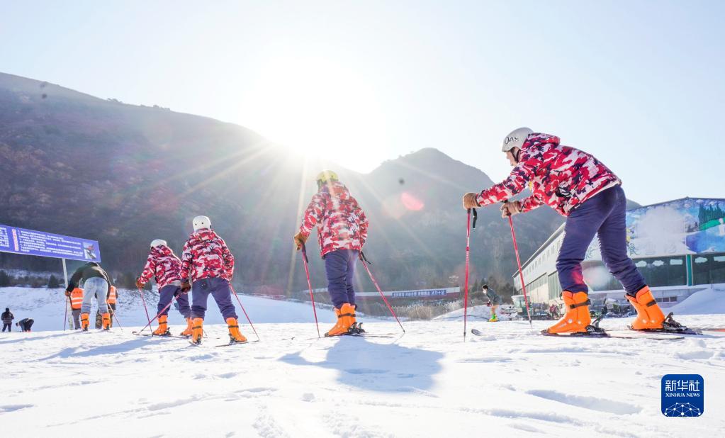 2022年12月31日,滑雪愛好者在河北省遵化市一家滑雪場練習(xí)滑雪。