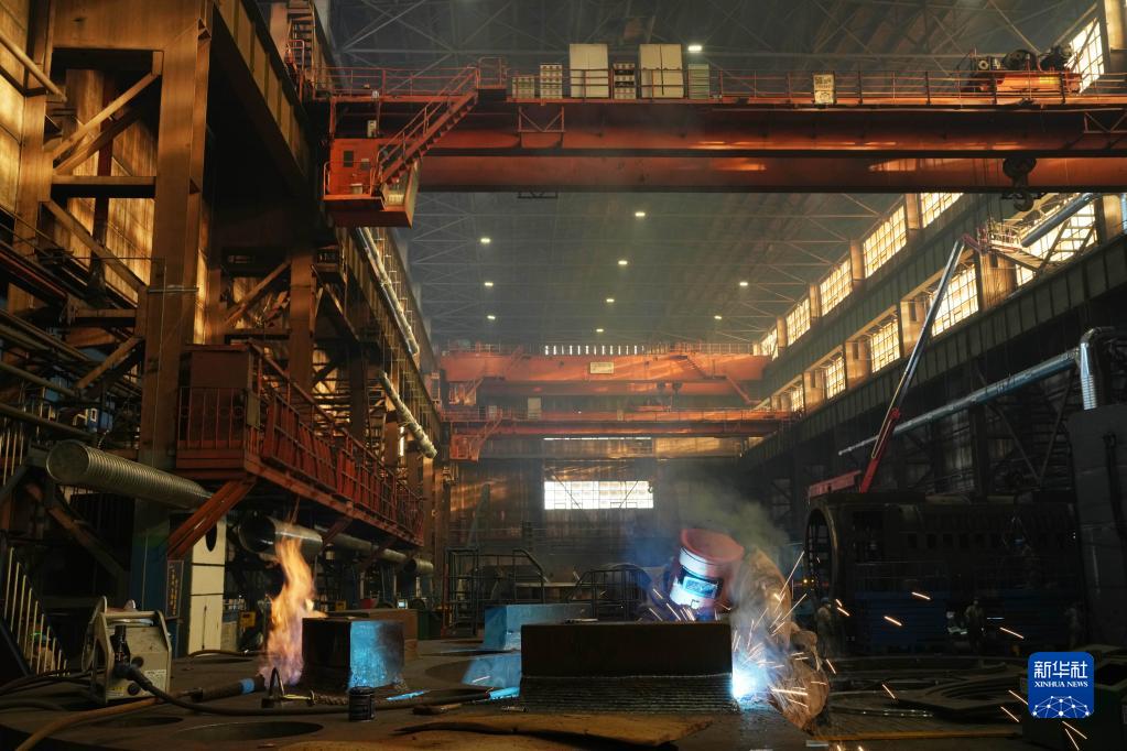 1月1日,在哈電集團哈爾濱電機廠有限責任公司生產車間,工人在生產作業。