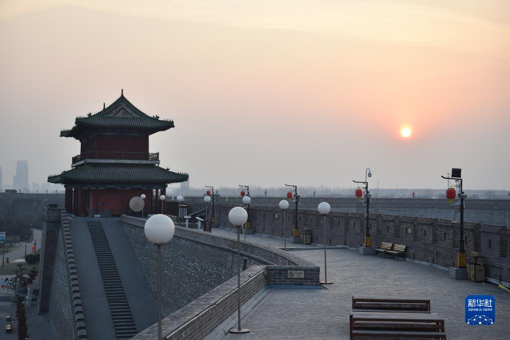 1月1日,在河北省石家莊市正定縣南城門拍攝的新年初升的太陽。