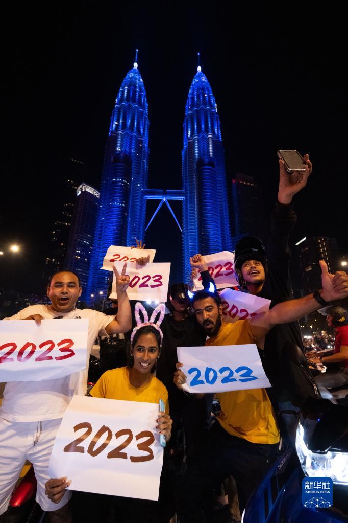 2023年1月1日,人們在馬來西亞吉隆坡慶祝新年到來。