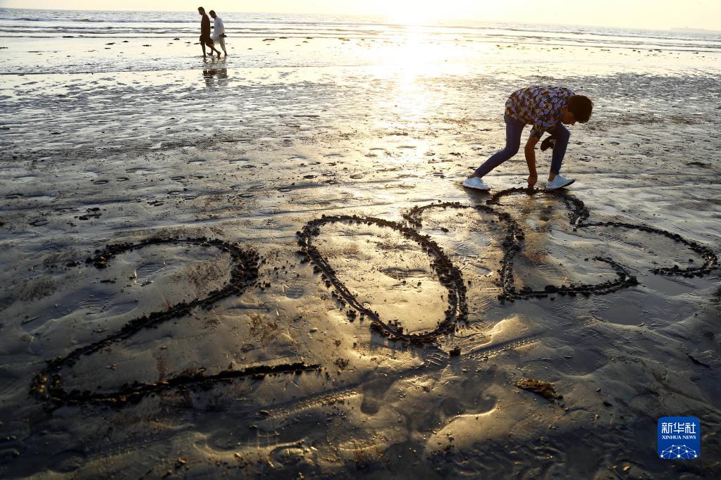 2022年12月31日,一名男子在巴基斯坦卡拉奇的海灘上迎接新年。