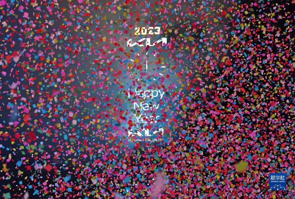 2023年1月1日,慶祝新年的彩片從美國紐約時報廣場上空飄落。