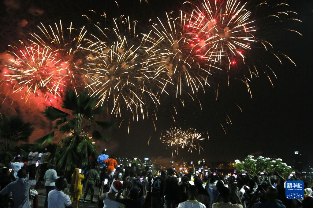 2023年1月1日,人們在科特迪瓦經濟首都阿比讓觀看煙花表演。