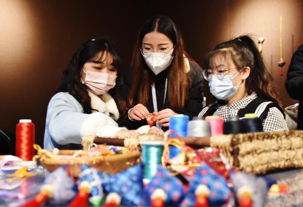 1月1日,游客在貴州省黔東南苗族侗族自治州凱里市下司古鎮體驗香包制作。