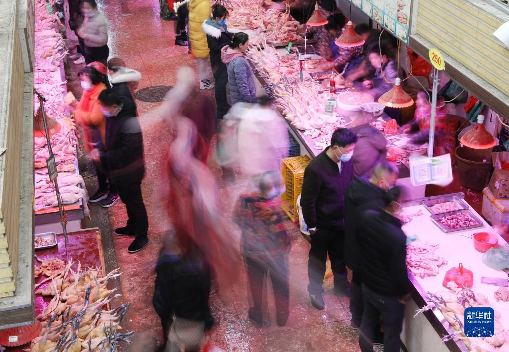 1月1日,人們在湖南省永州市道縣農貿市場選購商品。