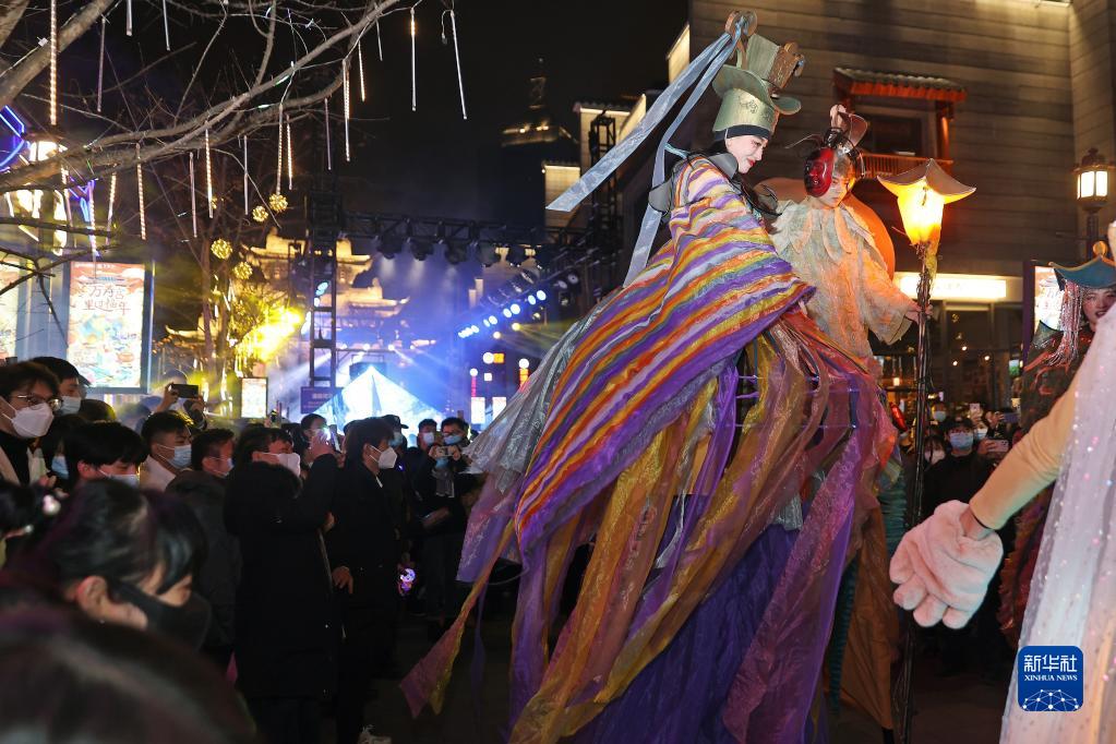 市民在江西省南昌市西湖區萬壽宮歷史文化街區觀看巡游表演(2022年12月31日攝)。