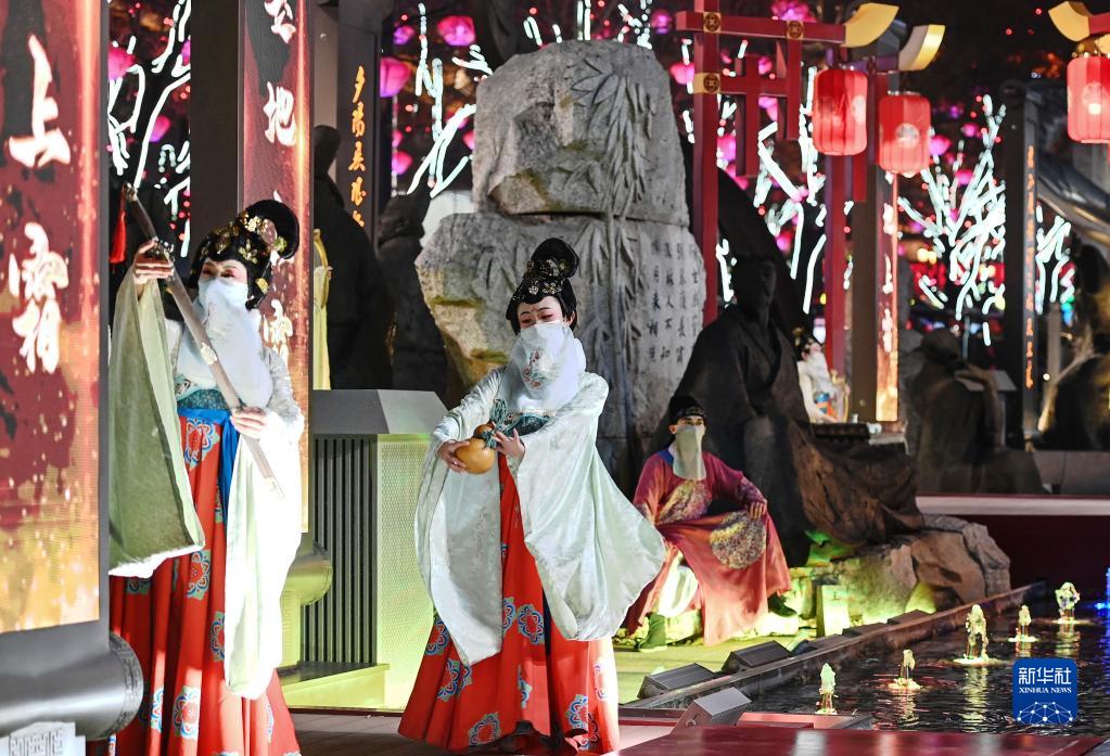 2022年12月30日,演藝人員在大唐不夜城步行街表演。