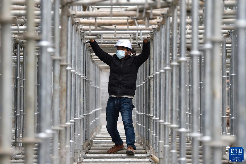 1月1日,建設(shè)者在江蘇省南京市浦口區(qū)一建設(shè)工地忙碌。