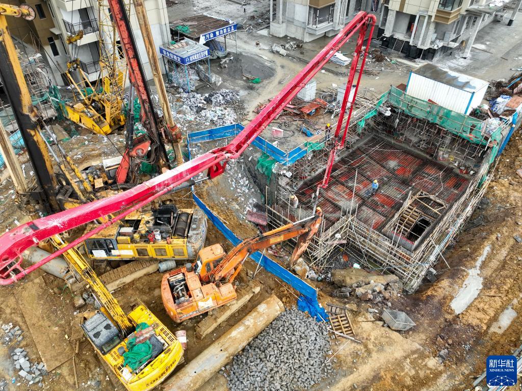 1月1日,工人在貴州省遵義市一處建筑工地工作(無人機照片)。