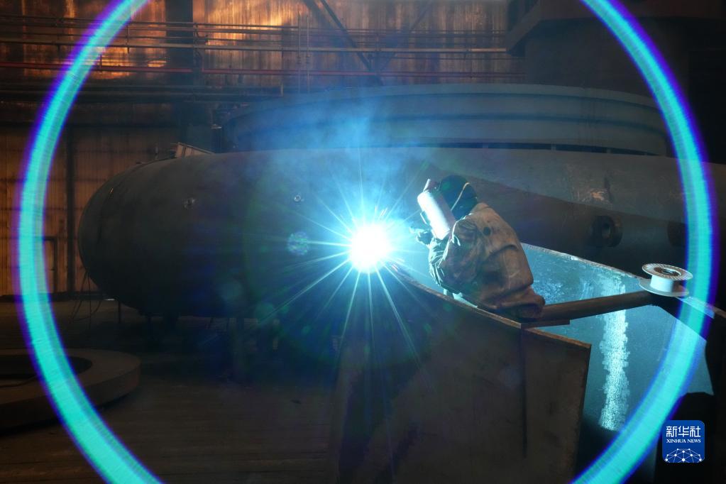 1月1日,在哈電集團(tuán)哈爾濱電機(jī)廠有限責(zé)任公司生產(chǎn)車(chē)間,工人在作業(yè)。