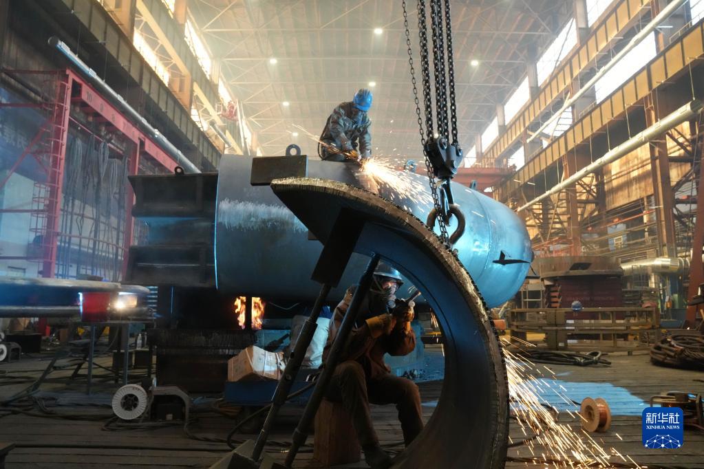 1月1日,在哈電集團哈爾濱電機廠有限責任公司生產車間,工人在作業。