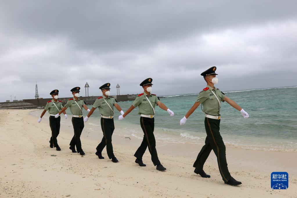 1月1日,駐守在三沙永興島的武警海南總隊(duì)??谥ш?duì)機(jī)動(dòng)四中隊(duì)官兵沿海岸線(xiàn)巡邏執(zhí)勤。