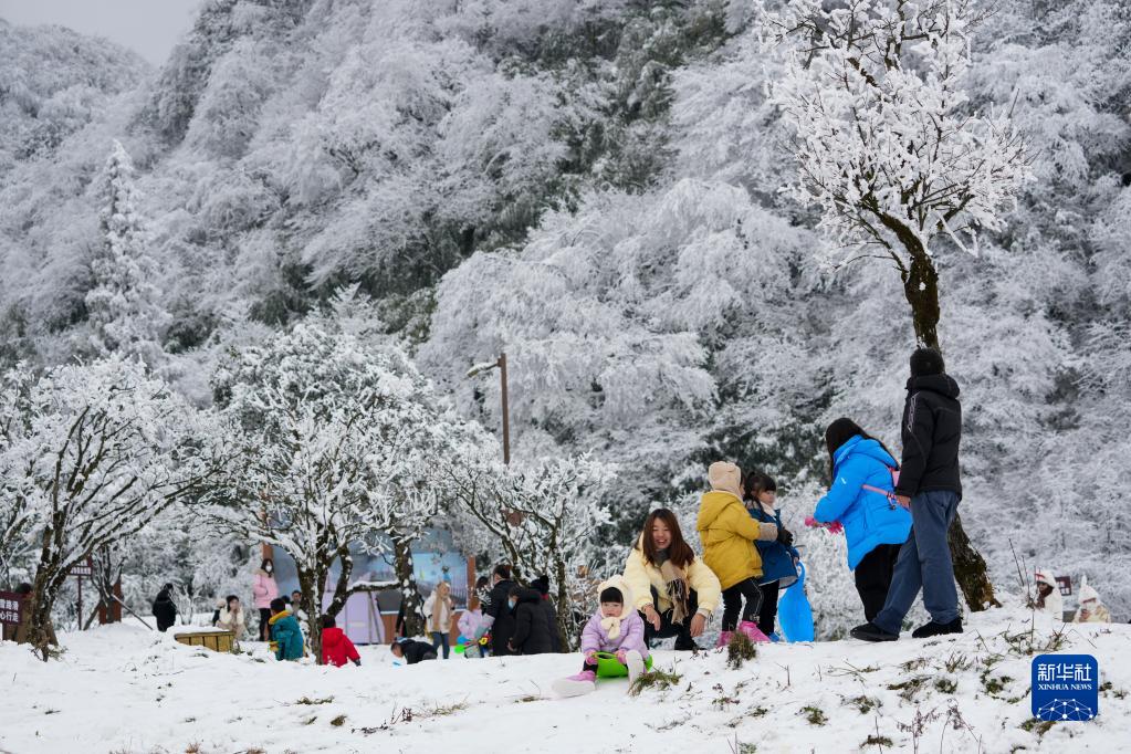 當(dāng)日,位于重慶市南川區(qū)的世界自然遺產(chǎn)地金佛山迎來(lái)降雪。景區(qū)內(nèi)雪花紛飛,銀裝素裹,南方罕有的冰雪景色吸引了眾多游客前往觀光旅游。據(jù)了解,當(dāng)日金佛山景區(qū)接待游客達(dá)12000人,實(shí)現(xiàn)了新年冬季旅游的“開(kāi)門(mén)紅”。