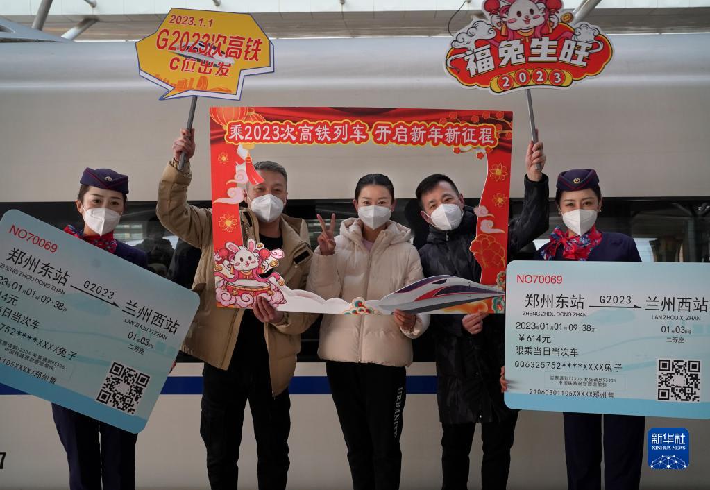當日,500多名旅客登上G2023次高鐵列車,開啟嶄新的一年。G2023次列車由中國鐵路鄭州局集團有限公司鄭州客運段擔當值乘,列車從商丘始發,途經鄭州東站等站,最終到達蘭州西站,因恰巧與2023新年數字吻合,這趟列車也被旅客親切稱為“新年高鐵”。