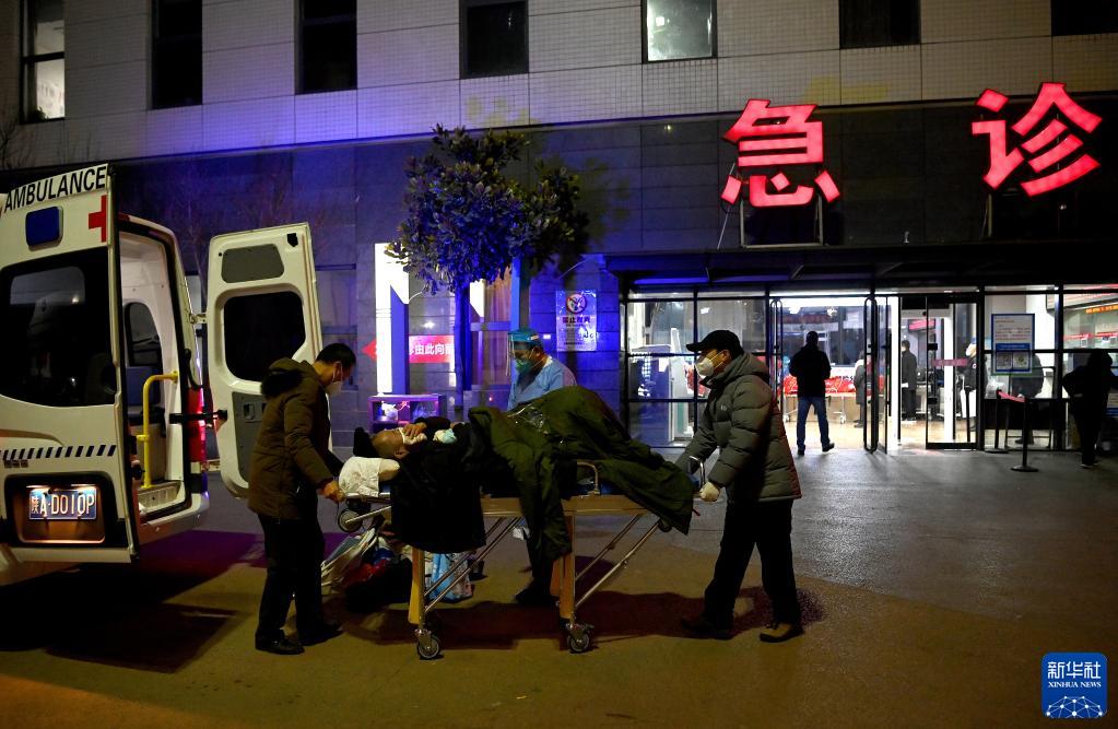 1月1日凌晨,西安交通大學(xué)第一附屬醫(yī)院急診科的醫(yī)務(wù)人員將患者用救護(hù)車轉(zhuǎn)往醫(yī)院其他院區(qū)住院治療。