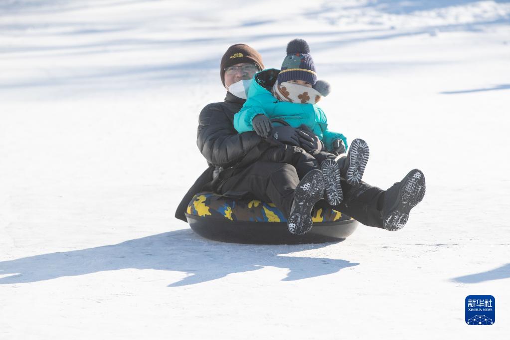 元旦假期,喜愛冰雪的人們來到冰雪娛樂場所游玩,感受冰雪運動的快樂。