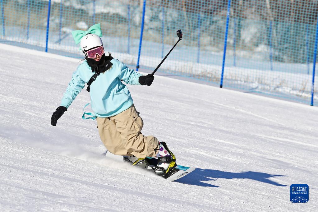 元旦假期,喜愛冰雪的人們來到冰雪娛樂場所游玩,感受冰雪運動的快樂。