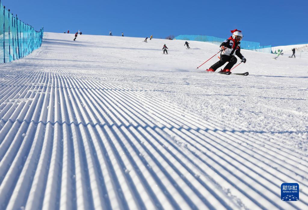 1月1日,滑雪愛好者在河北省張家口市崇禮區云頂滑雪公園滑雪。