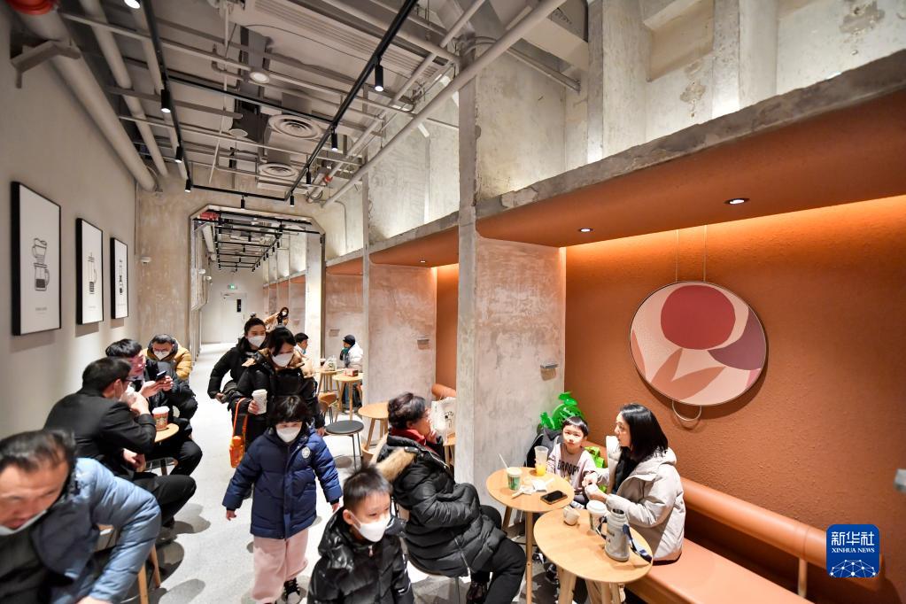 1月1日,消費者在商場內一家“工業風”設計的咖啡店內休閑。