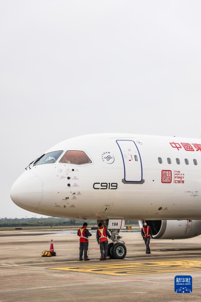 新華全媒+丨國(guó)產(chǎn)大飛機(jī)C919飛抵海口美蘭國(guó)際機(jī)場(chǎng)