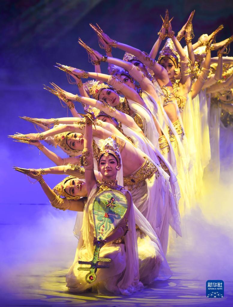 1月2日,甘肅省歌舞劇院的演員在表演舞劇《絲路花雨》。