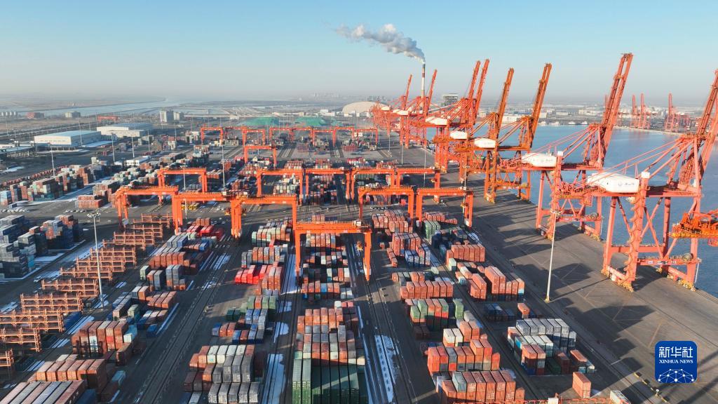 1月3日拍攝的河北唐山港京唐港區(qū)集裝箱碼頭(無(wú)人機(jī)照片)。