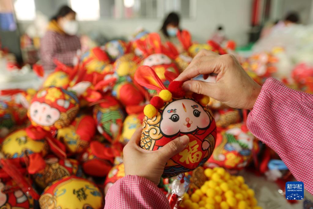 1月3日,在山東省臨沂市沂南縣一家玩具企業,工人在加工“萌兔”玩具。
