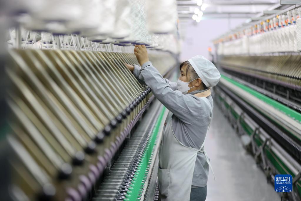 1月3日,在浙江省湖州市德清縣鐘管鎮一家紡織企業,工人在車間作業。