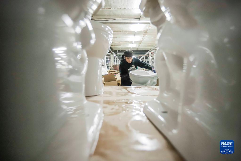 1月3日,工人在河北唐山海港經濟開發區一家衛浴企業車間工作。