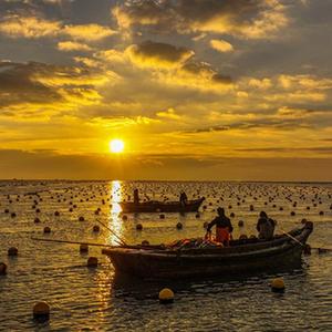 1月3日,漁民駕駛漁船前往海洋牧場養殖區開展生產作業(無人機照片)。
