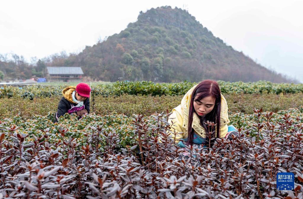 1月3日,村民在貴州省畢節市百里杜鵑管理區匯境花卉科技園管護花卉。
