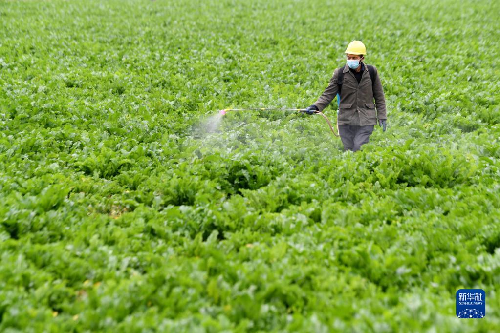 1月3日,農(nóng)民在貴州省黔東南苗族侗族自治州榕江縣車江壩區(qū)蔬菜基地噴施葉面肥。