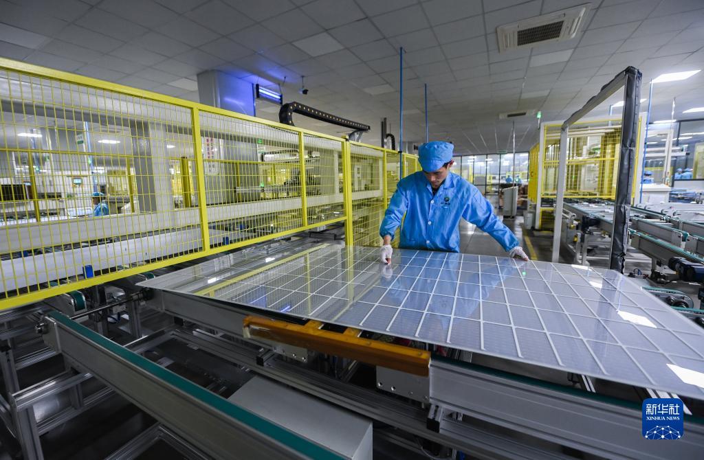 1月3日,工人在浙江格普光能科技有限公司的車間內生產太陽能電池片、光伏組件等。