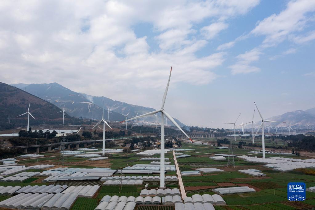 風電設施遍布四川省涼山彝族自治州德昌縣麻栗鎮(zhèn)(無人機照片,1月2日攝)。
