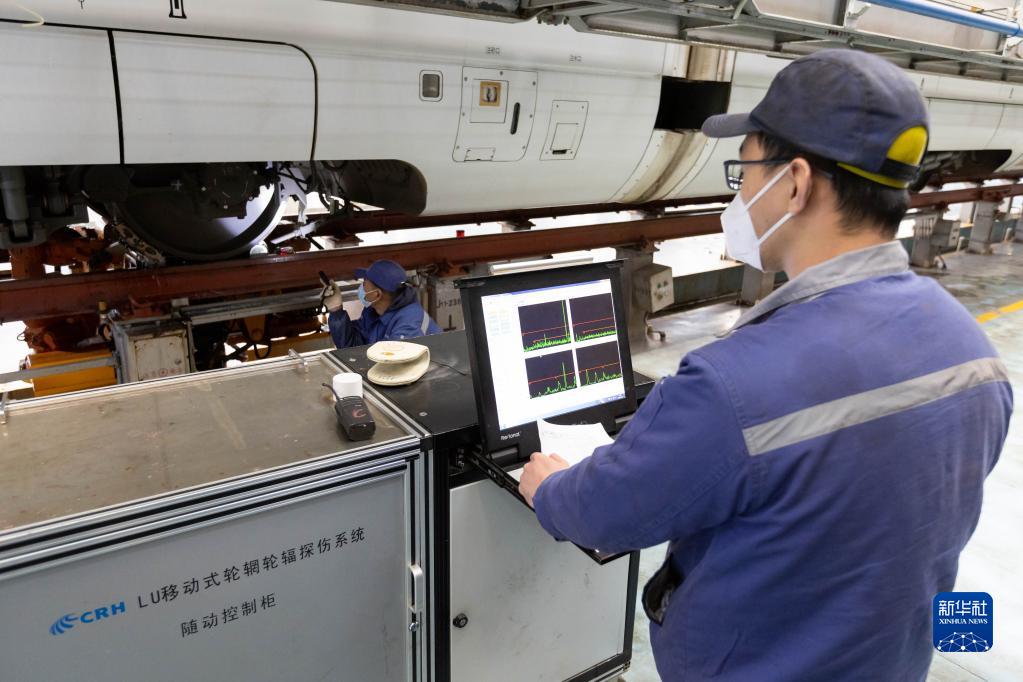 2023年春運即將到來,上海動車段虹橋動車運用所加緊開展高鐵檢修工作,保障春運安全。
