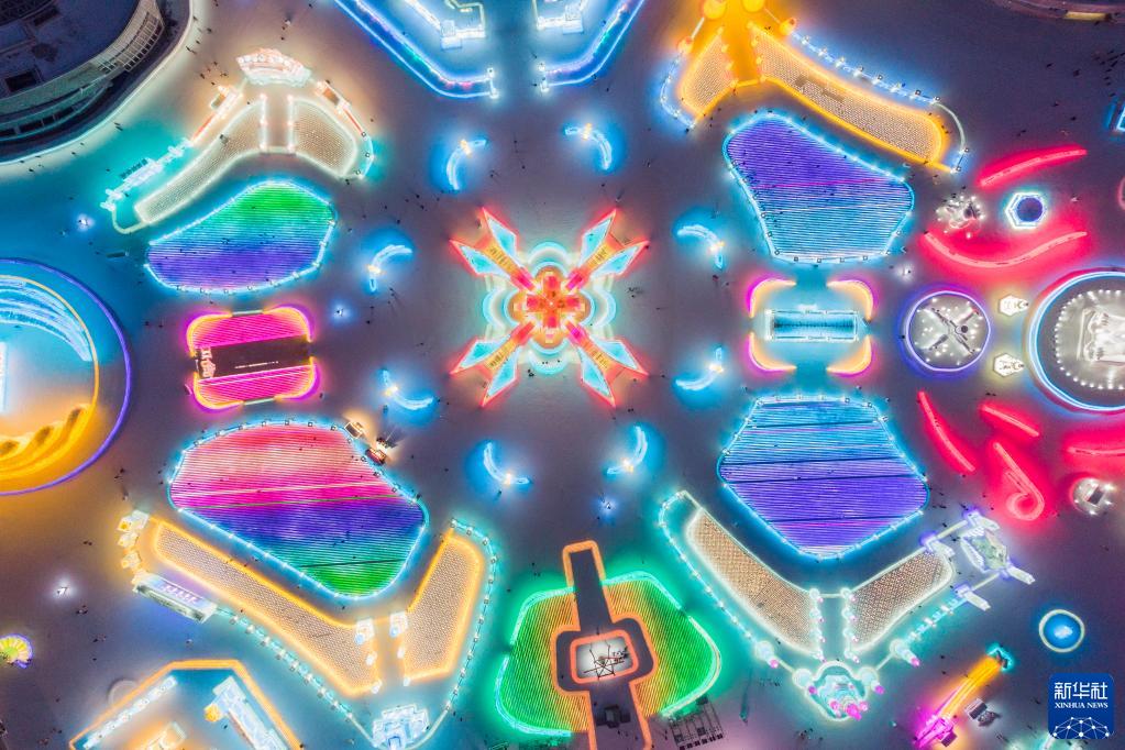 這是1月3日拍攝的第24屆哈爾濱冰雪大世界園區(無人機照片)。