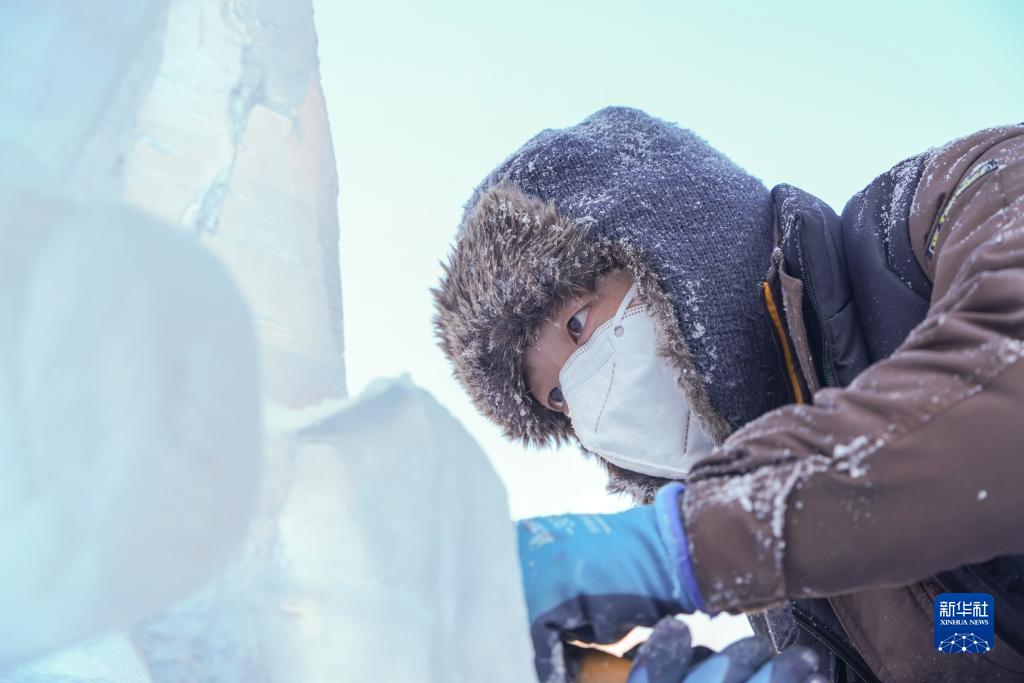 哈爾濱:冰雕高手“馴”冰秀技藝