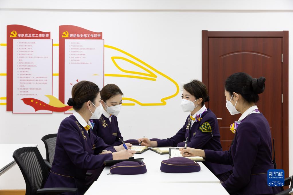 2023年春運將于1月7日正式啟動,鐵路上海客運段高鐵一車隊組織乘務人員進行禮儀禮節、儀容儀表、防疫學習等培訓,提升服務品質,迎接春運。