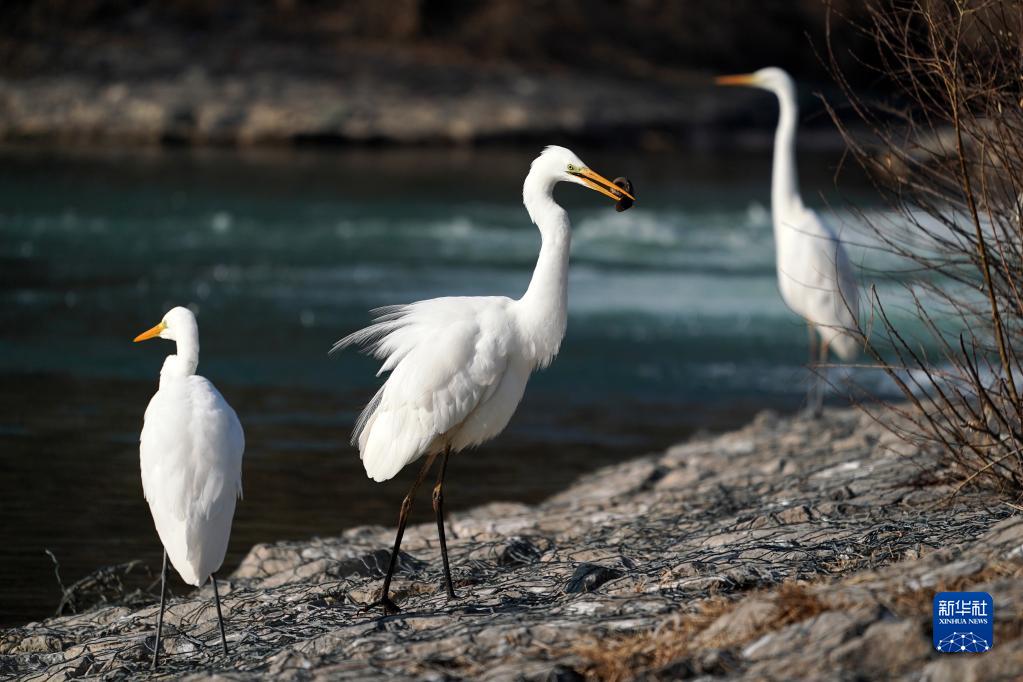 1月4日,白鷺在太原市汾河棲息。