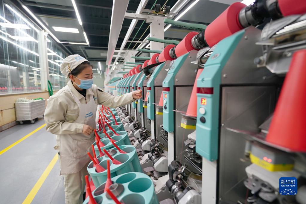 1月4日,河北南冠科技有限公司工人在生產(chǎn)羊絨紗線。