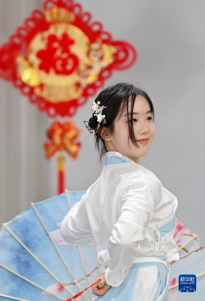 當日,天津大學國際教育學院的留學生為參加“校園春晚”加緊排練文藝節目。他們身穿漢服演唱中文歌曲,排練傳統古典舞蹈等節目,感受中國傳統文化的魅力。