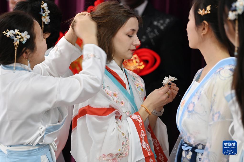 當日,天津大學國際教育學院的留學生為參加“校園春晚”加緊排練文藝節目。他們身穿漢服演唱中文歌曲,排練傳統古典舞蹈等節目,感受中國傳統文化的魅力。