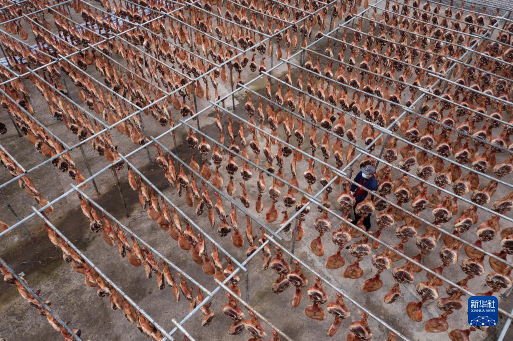 臨近新春佳節(jié),浙江省金華市的火腿企業(yè)開足馬力生產(chǎn)金華火腿,作為特色年貨供應(yīng)節(jié)日市場。